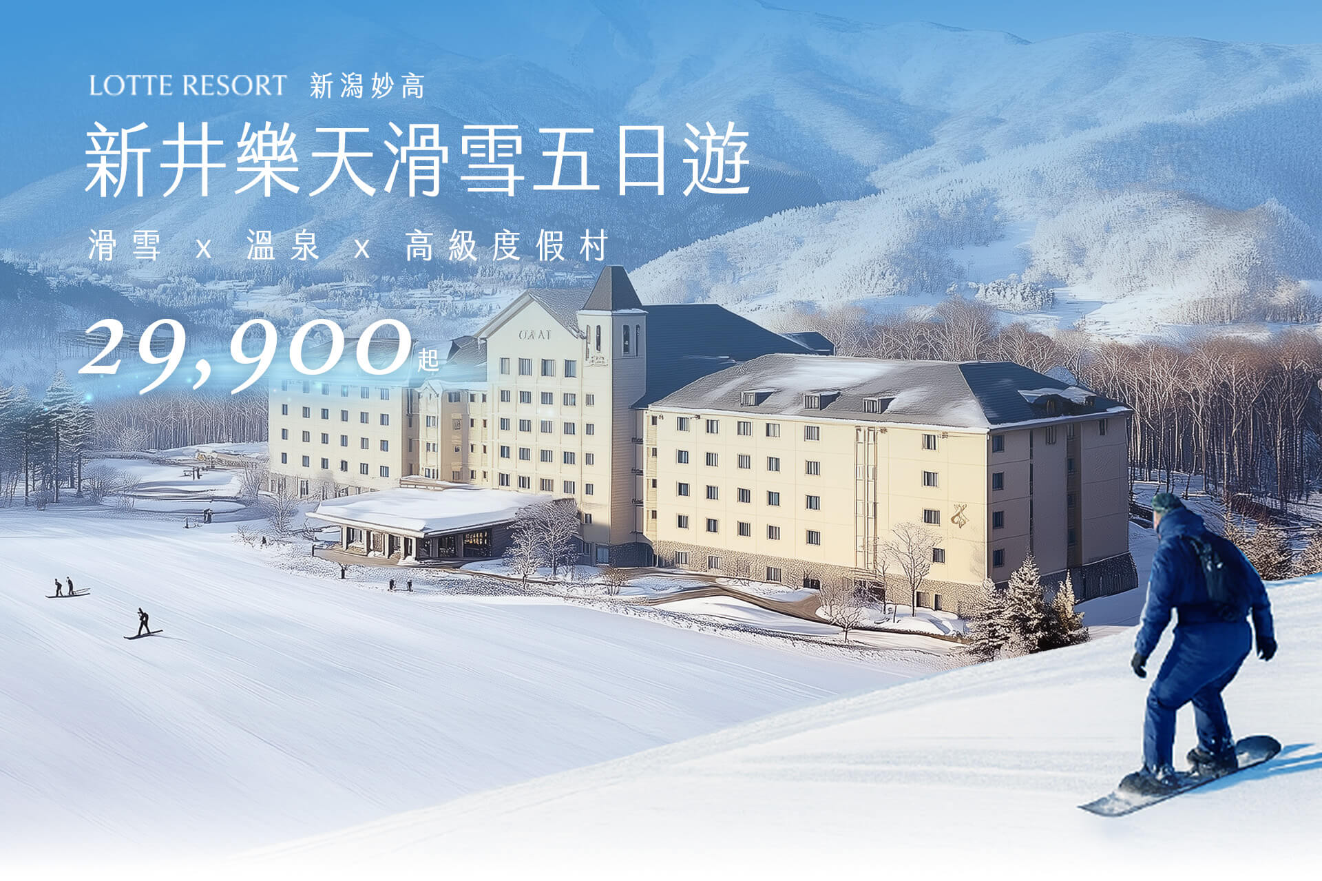 五星級新井樂天滑雪團帶你前往新潟妙高最受歡迎的滑雪勝地—LOTTE ARAI RESORT。